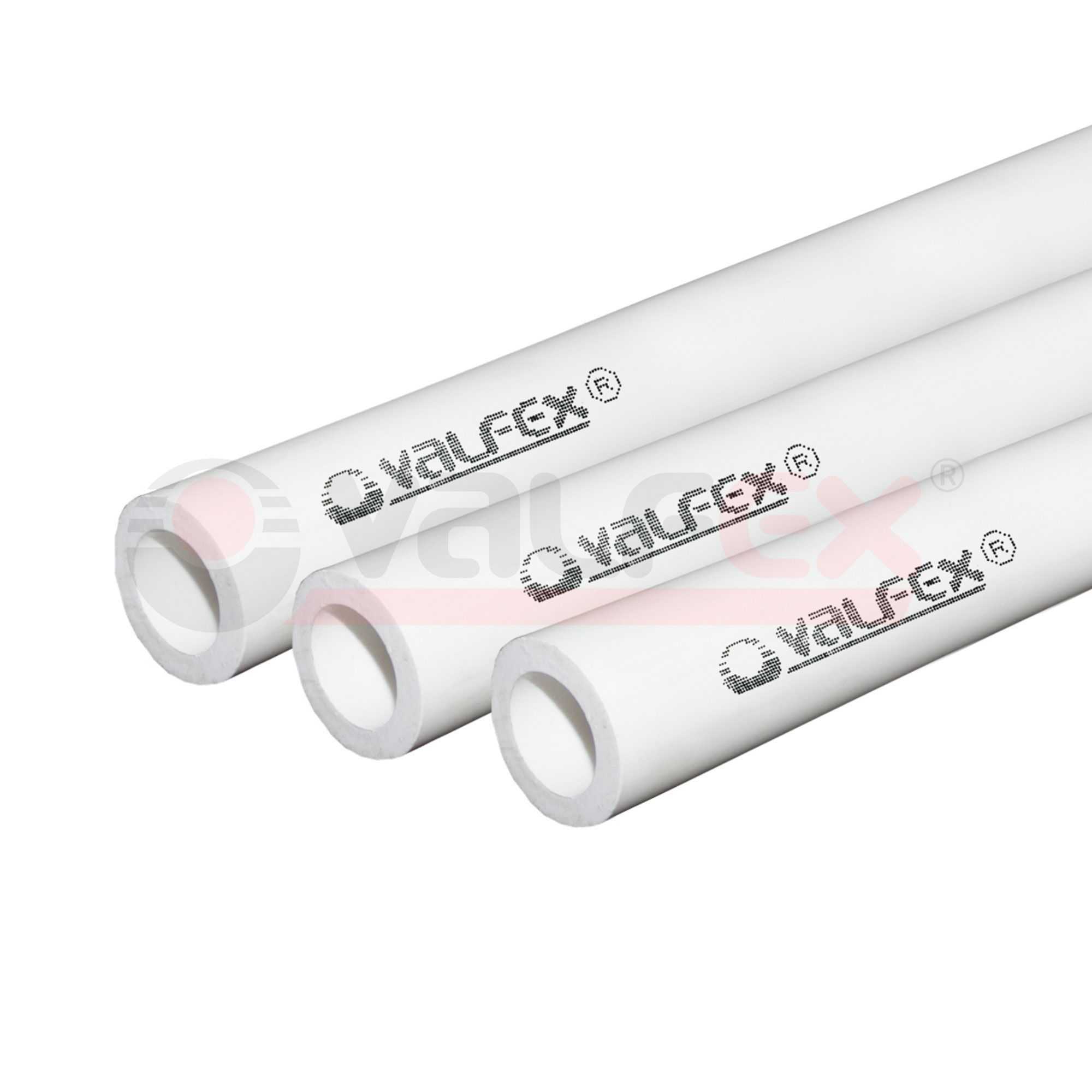 Трубы кольцевого сечения из статистического сополимера полипропилена PP-R 80 т. м. VALFEX® номинальным наружным диаметром от 20 до 110 мм предназначены для транспортирования воды с температурой до 20° С для хозяйственно-питьевого водоснабжения, а также для транспортирования других жидких и газообразных сред, к которым материал труб химически стоек.