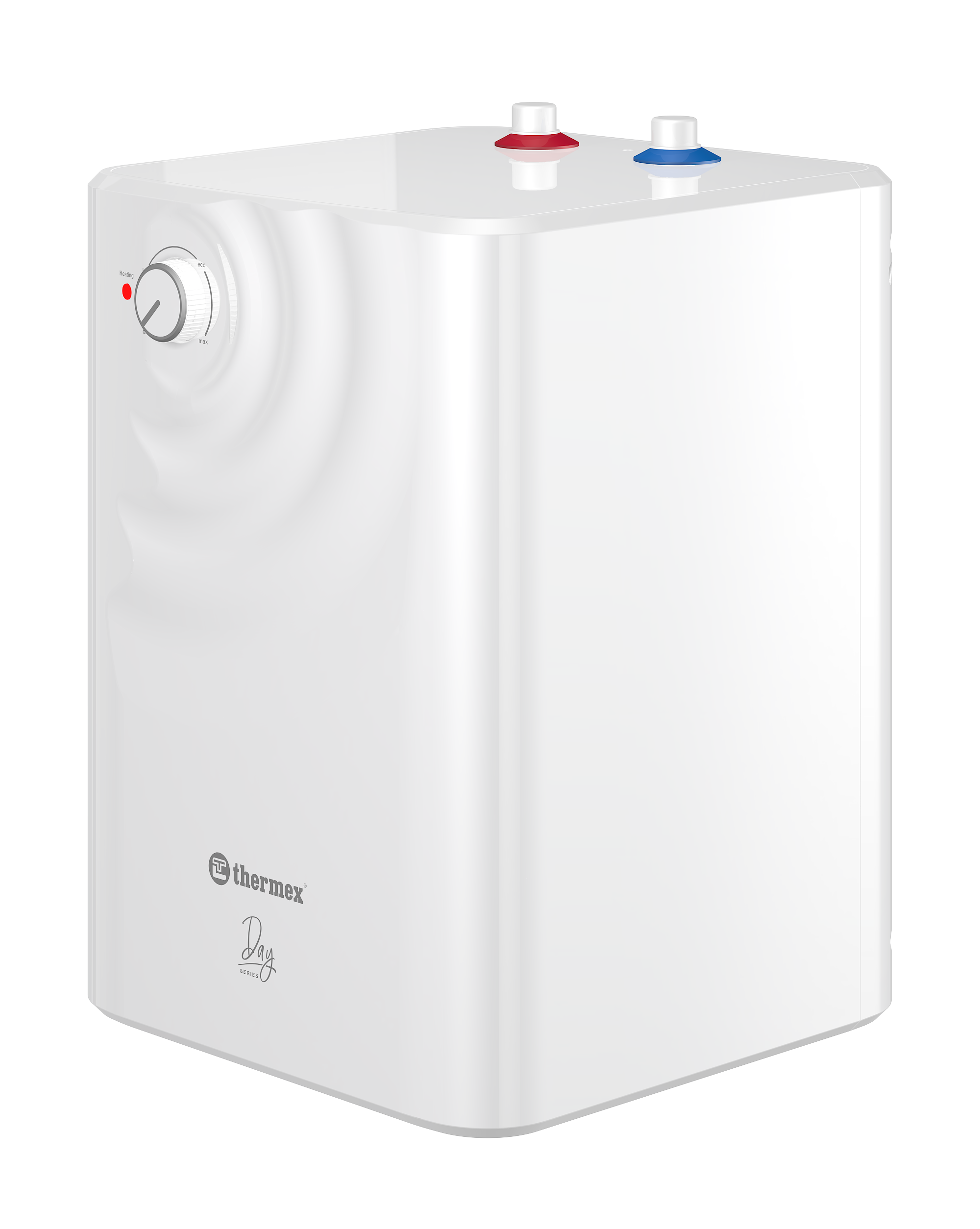 Модели Thermex Day 7 U и 7 O имеют объем 7 литров и соответственно верхнее и нижнее подключение, высота баков составляет 399 мм, глубина и ширина 248 на 262 мм; модели Day 10 U и 10 O объемом 10 литров с верхним и нижним подключением в высоту 416 мм, глубина 278 мм, ширина 291 мм; модели Day 15 U и 15 O объемом на 15 литров с верхним и нижним подключением в высоту 447 мм, глубина и ширина составляют 315 на 329 мм.